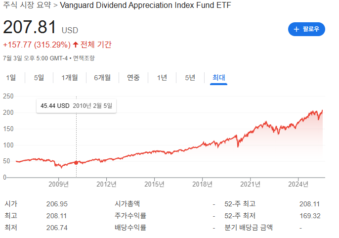 - 정식 명칭: Vanguard Dividend Appreciation ETF