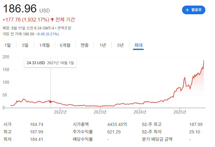 • 52주 범위: 29.27 ~ 187.99달러